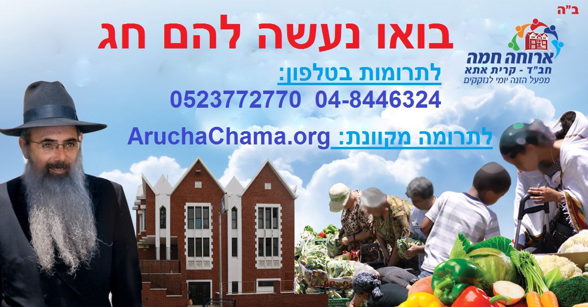אנו מזמינים את כל ידידי ארוחה חמה קרית אתא להיות שותפים למצווה חשובה זו, על ידי פדיון כספי ה"כפרות" לטובת מפעל החסד.